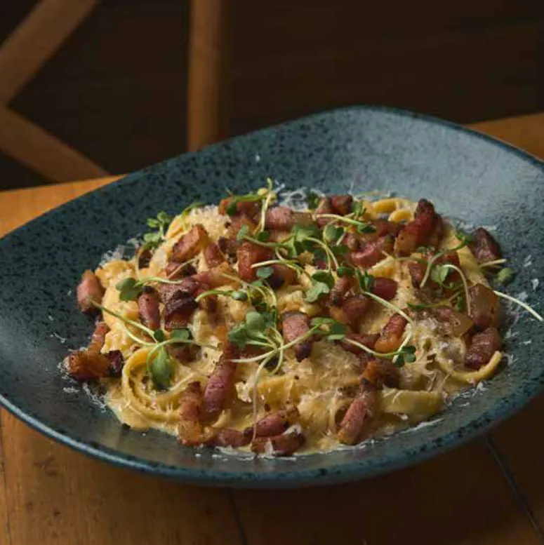 Pasta en salsa de cuatro quesos, con brócoli, pechuga de pollo y mix de fruto secos. (pasta a elección penne o fetuccini).